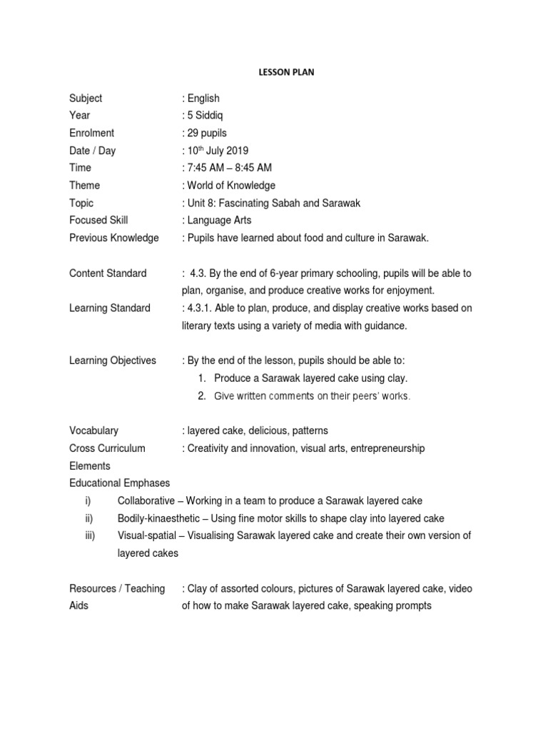 English Year 5 Fascinating Sabah And Sarawak Making Kek Lapis Sarawak Pdf Educational Psychology Education Theory